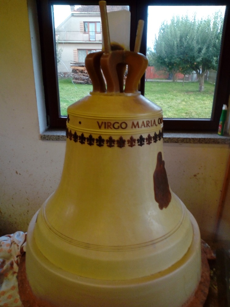 Zvon se povedl jak kovolitecky i zvukově. Naladěn je na e2 a váží 165kg.