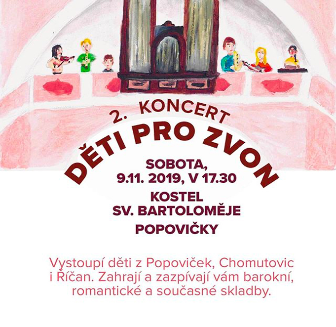 Po velkém úspěchu minulého koncertu, jsme se rozhodli uspořádat koncert druhý. Tentokrát vystoupily děti z Popoviček, Chomutovic a Říčan. Zahrály a zazpívaly barokní, romantické a současné skladby.